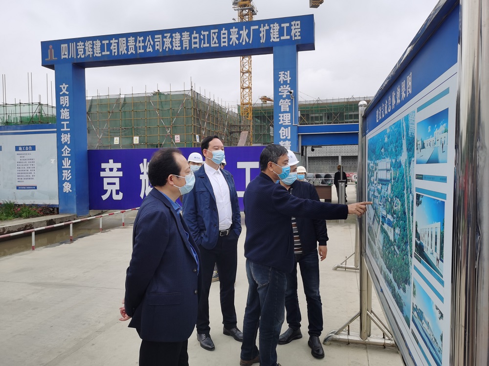 鐘杰董事長一行首先前往成都青白江水業(yè)股份有限公司,先后視察了該公司20T自來水廠擴(kuò)建項目工地和現(xiàn)有自來水生產(chǎn)線,詳細(xì)詢問了工程規(guī)模、建設(shè)進(jìn)度、質(zhì)量控制、安全生產(chǎn)等情況,聽取了成都青白江水業(yè)股份有限公司經(jīng)營班子工作匯報。