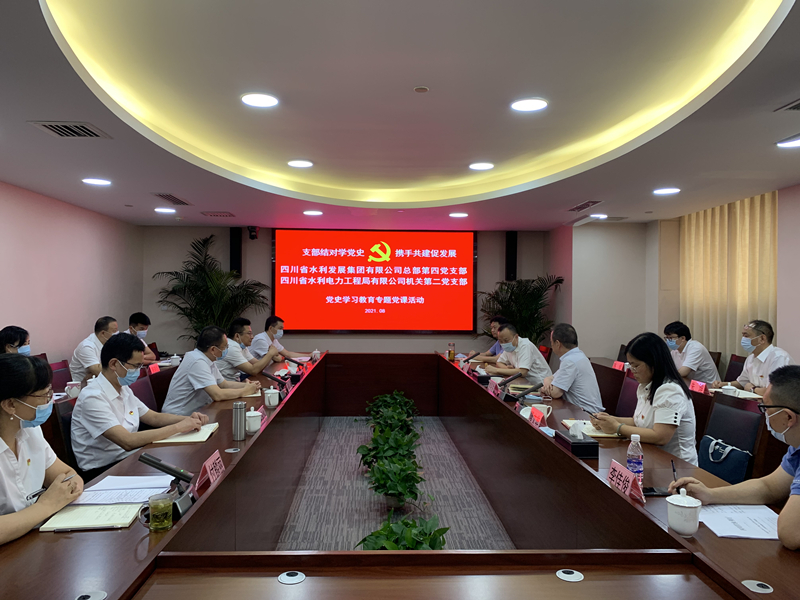 2021年8月4日,省水發(fā)集團(tuán)總部第四黨支部與工程局公司機(jī)關(guān)第二黨支部在工程局公司成都總部會(huì)議室聯(lián)合開展“支部結(jié)對學(xué)黨史.攜手共建促發(fā)展”黨史學(xué)習(xí)教育專題黨課活動(dòng)。集團(tuán)黨委委員、工程局公司黨委書記、董事長代勇,集團(tuán)黨委委員、總工程師黃永沾,集團(tuán)副總經(jīng)理隆文非以普通黨員身份參加所在支部組織的活動(dòng)。