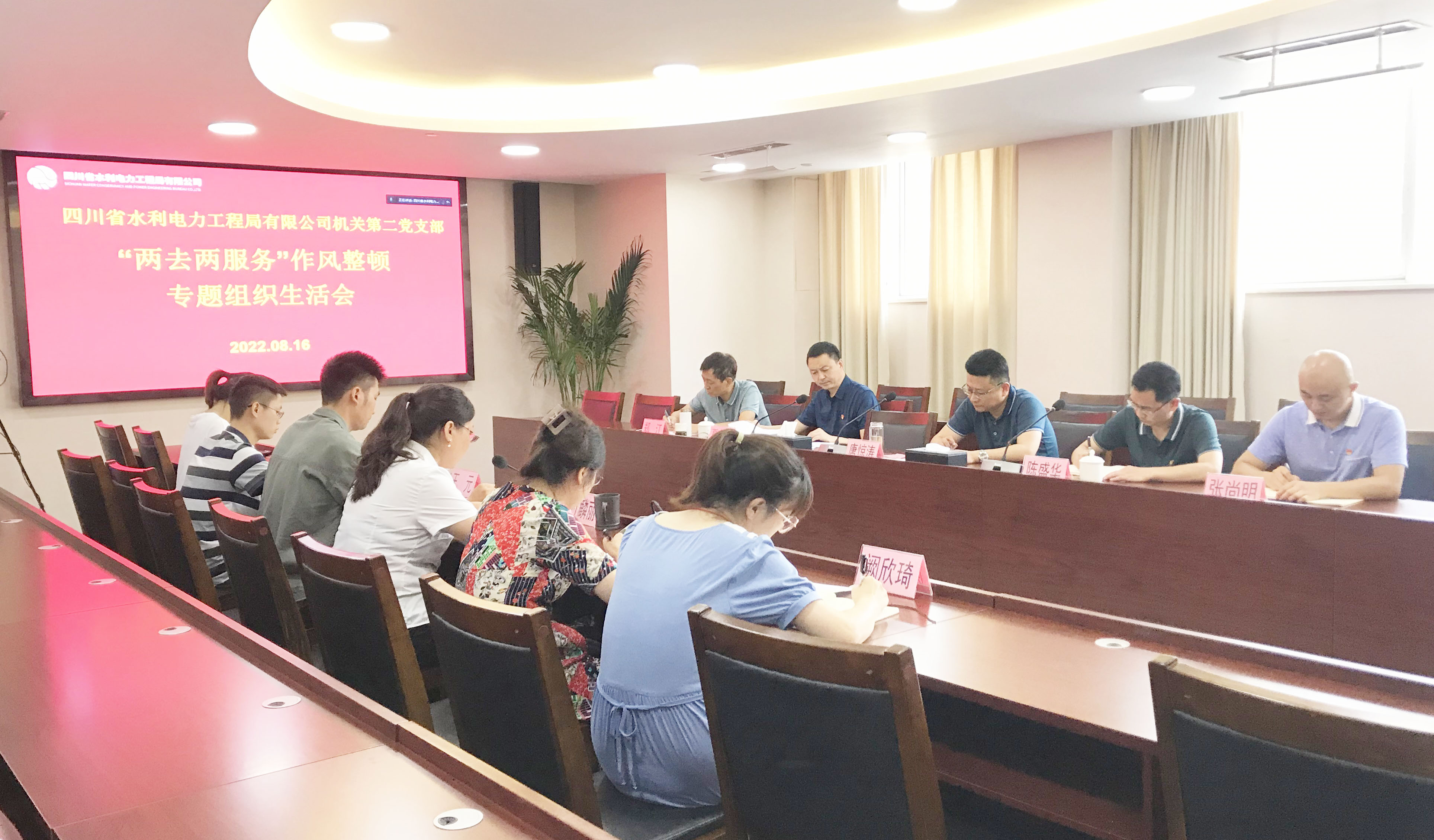 8月16日,工程局公司機(jī)關(guān)第二黨支部組織支部黨員及支部涵蓋部門非黨員職工在公司總部會(huì)議室(資陽(yáng)辦公區(qū)在301會(huì)議室以視頻形式參加)召開“兩去兩服務(wù)”作風(fēng)整頓轉(zhuǎn)入“抓整改重鞏固看成效”階段專題組織生活會(huì)。公司黨委專職副書記唐驚濤,黨委委員、紀(jì)委書記陳盛華,黨委委員、工會(huì)主席夏永紅以普通黨員身份參加會(huì)議。工會(huì)副主席、機(jī)關(guān)第二黨支部書記付麟麗主持會(huì)議。