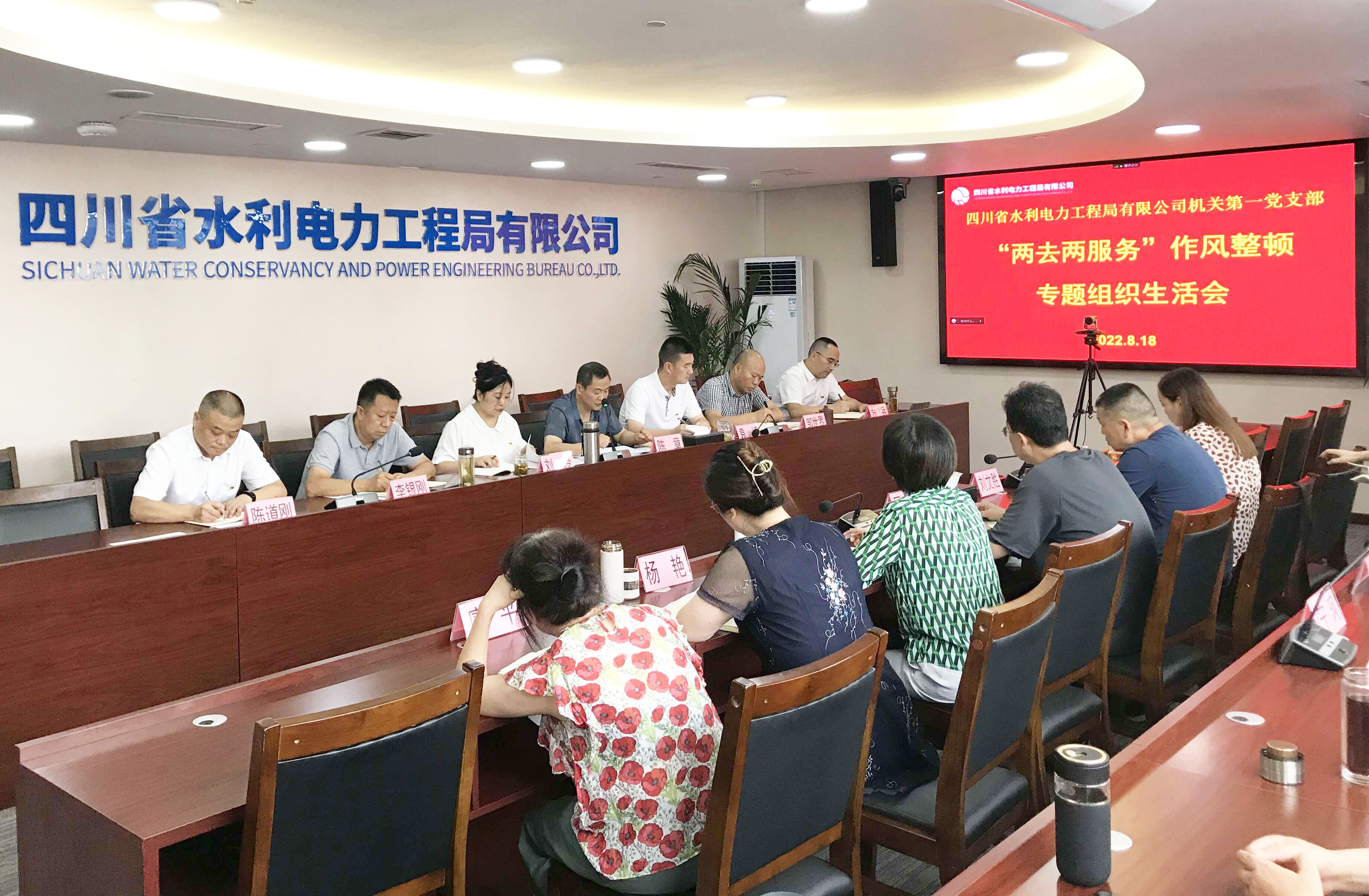 8月18日下午,工程局公司機(jī)關(guān)第一黨支部在公司總部大會(huì)議室召開“兩去兩服務(wù)”作風(fēng)整頓轉(zhuǎn)入“抓整改重鞏固看成效”階段專題組織生活會(huì)。資陽辦公區(qū)以視頻形式參加。會(huì)議由支部書記陳章主持,支部全體黨員及支部涵蓋部門非黨員職工參加會(huì)議。