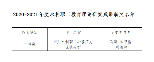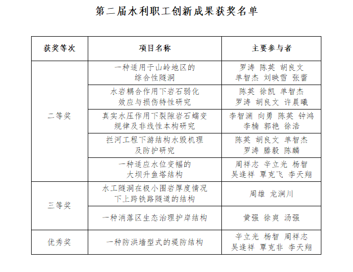 10月26日,中國水利教育協會在官網發(fā)布了第二屆水利職工創(chuàng)新成果評選結果和2020-2021年度全國水利職工教育理論研究成果評選結果的公告,集團多名職工在評選中獲獎。