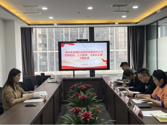 1月31日,投資公司下屬水網(wǎng)科技公司黨支部為深入貫徹落實(shí)黨的二十大會(huì)議精神,組織專題黨課教育活動(dòng),結(jié)合經(jīng)營(yíng)發(fā)展實(shí)際,開(kāi)年即謀劃公司全年重點(diǎn)工作。黨支部書(shū)記馬璐以《貫徹黨的二十大精神,支部怎么做?》為主題,圍繞黨的二十大報(bào)告和2023年全國(guó)水利工作會(huì)議的精神為公司全體黨員職工講授了專題黨課。