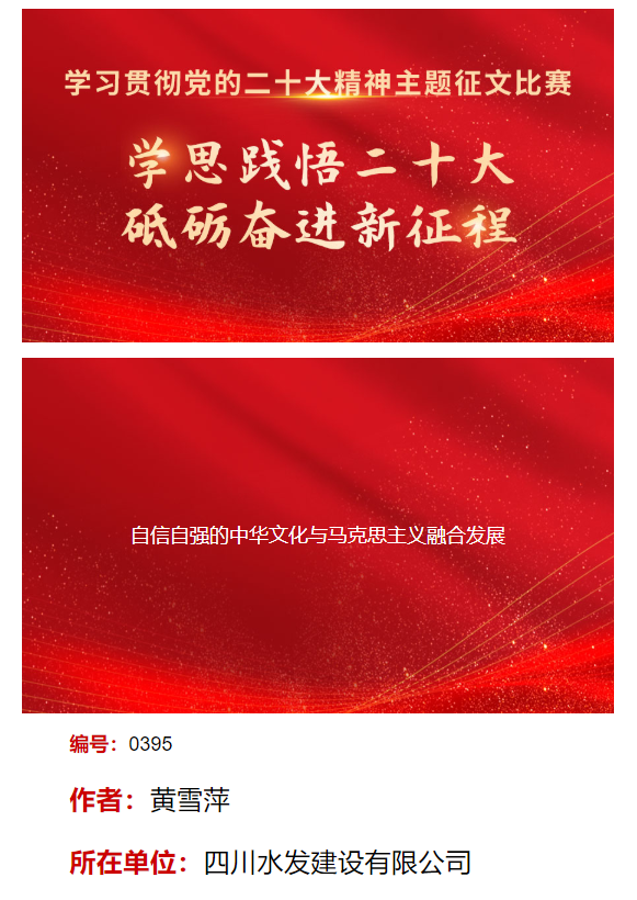集團(tuán)工會根據(jù)省總女職工委員會的要求,組織集團(tuán)總部及下屬各單位積極開展“巾幗心向黨·奮進(jìn)新征程”學(xué)習(xí)貫徹黨的二十大精神巾幗大學(xué)習(xí)答題挑戰(zhàn)賽和征文活動(dòng)。堅(jiān)持以學(xué)習(xí)貫徹黨的二十大精神為指引,強(qiáng)化集團(tuán)女職工理論武裝,引領(lǐng)女職工做新征程的追夢人,在四川水網(wǎng)建設(shè)中凝聚女性力量。近期,集團(tuán)喜報(bào)頻頻,發(fā)展計(jì)劃部榮獲“四川省直機(jī)關(guān)三八紅旗集體”,設(shè)計(jì)公司王靜榮獲“四川省三八紅旗手”,建設(shè)公司女職工黃雪萍的二十大征文在川觀新聞上發(fā)表,充分展現(xiàn)了集團(tuán)女職工的風(fēng)采。