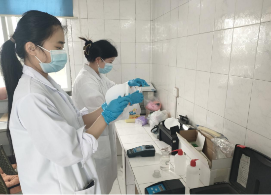 水質(zhì)檢測人員對原水水質(zhì)和出廠水水質(zhì)進(jìn)行檢測