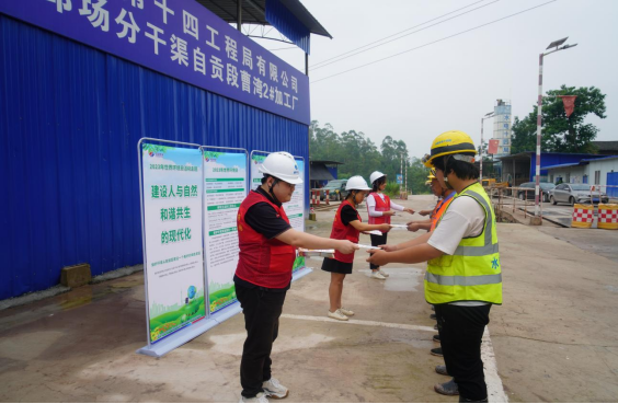 6月5日,習(xí)近平總書記在致“六五環(huán)境日”國家主場活動(dòng)的賀信中強(qiáng)調(diào),希望全社會(huì)行動(dòng)起來,做生態(tài)文明理念的積極傳播者和模范踐行者。習(xí)近平總書記在不久前給上海市虹口區(qū)嘉興路街道垃圾分類志愿者的回信中對志愿者的關(guān)心鼓勵(lì)以及推進(jìn)生態(tài)文明建設(shè)的囑托使廣大青年志愿者備受鼓舞,干勁十足。為進(jìn)一步踐行習(xí)近平總書記關(guān)于生態(tài)文明建設(shè)系列重要論述精神,青年理論學(xué)習(xí)小組在世界環(huán)境日當(dāng)天組織開展“環(huán)境與生命共存,環(huán)保與健康同在”為主題的青年志愿活動(dòng),志愿者們來到邱場分干渠自貢段施工現(xiàn)場,最印發(fā)宣傳手冊、張貼主題海報(bào)、懸掛宣傳標(biāo)語,與一線作業(yè)人員共同學(xué)習(xí)觀看世界環(huán)境日主題宣傳片,動(dòng)員參建各方從自身做起,從小事做起,切實(shí)樹牢生態(tài)環(huán)境保護(hù)理念,履行好保護(hù)環(huán)境的責(zé)任。