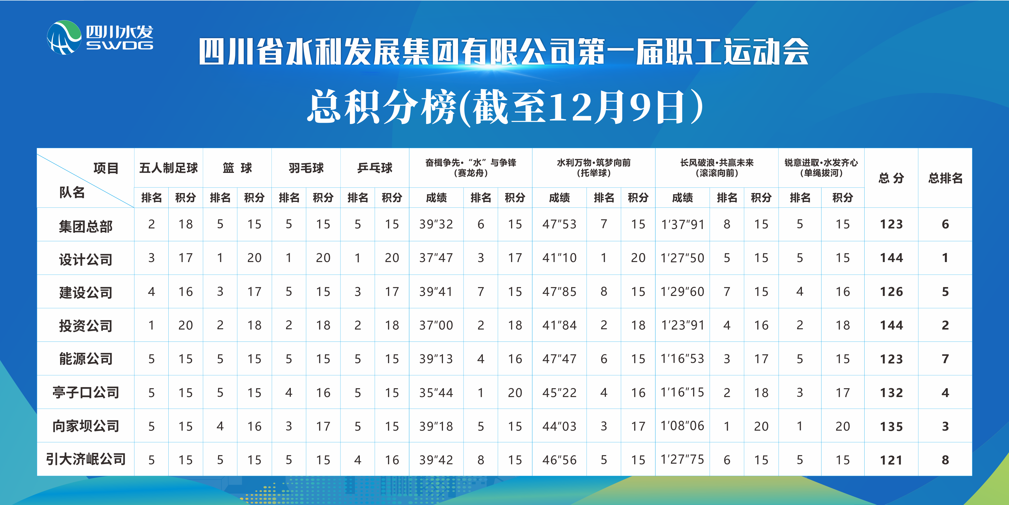 本屆職工運(yùn)動(dòng)會(huì)是水發(fā)集團(tuán)成立以來(lái)舉辦的第一次大型體育活動(dòng),12月5日-8日,已進(jìn)行了籃球、五人制足球、乒乓球、羽毛球,共60場(chǎng)循環(huán)賽和排位賽。這既是全體水發(fā)人的盛大節(jié)日,也是檢驗(yàn)集團(tuán)企業(yè)文化建設(shè)成果的一次盛典,更是展示水發(fā)人良好精神風(fēng)貌的一個(gè)契機(jī)。水發(fā)集團(tuán)現(xiàn)已構(gòu)建成了投建運(yùn)管一體化組織體系,并實(shí)現(xiàn)高效運(yùn)行。時(shí)到歲末年終,在工作最忙碌的階段,希望通過(guò)本次運(yùn)動(dòng)會(huì)進(jìn)一步激發(fā)干部職工干事創(chuàng)業(yè)的精氣神,提升攻堅(jiān)克難的戰(zhàn)斗力,為圓滿(mǎn)實(shí)現(xiàn)集團(tuán)年度各項(xiàng)目標(biāo)任務(wù)拼搏實(shí)干貢獻(xiàn)力量。