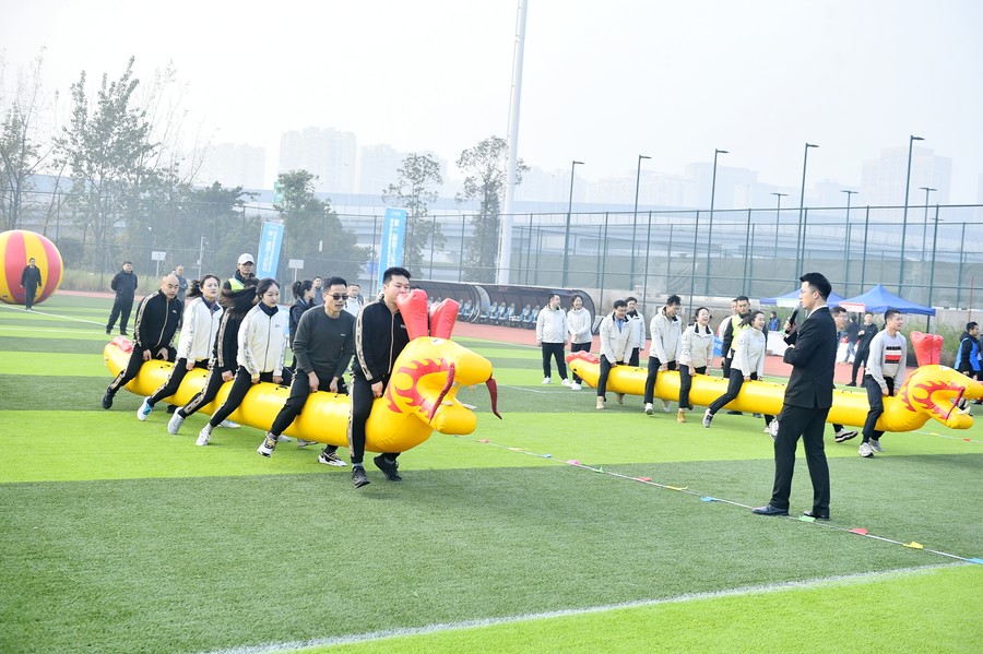 在趣味比賽中,水利萬(wàn)物·筑夢(mèng)向前(托舉球)項(xiàng)目各個(gè)參賽隊(duì)齊心協(xié)力,一起托舉起巨大球體穩(wěn)步前行,克服各種不確定性阻力最終到達(dá)終點(diǎn),迎來(lái)陣陣掌聲;在銳意進(jìn)取·水發(fā)齊心(單繩拔河)項(xiàng)目比賽現(xiàn)場(chǎng),抓牢賽繩,勒繩下腰,降低重心,齊心協(xié)力往后“拔”,歡呼聲、加油聲此起彼伏;奮楫爭(zhēng)先·“水”與爭(zhēng)鋒(賽龍舟)、長(zhǎng)風(fēng)破浪·共贏(yíng)未來(lái)(滾滾向前)趣味比賽項(xiàng)目,盡顯“活力水發(fā)·運(yùn)動(dòng)水發(fā)”的健康形象。