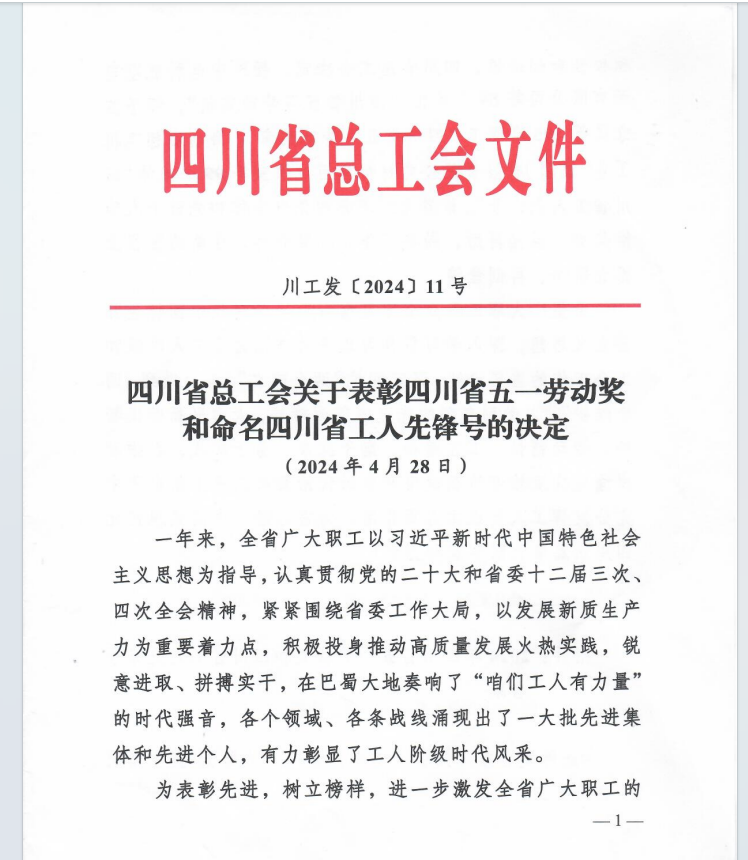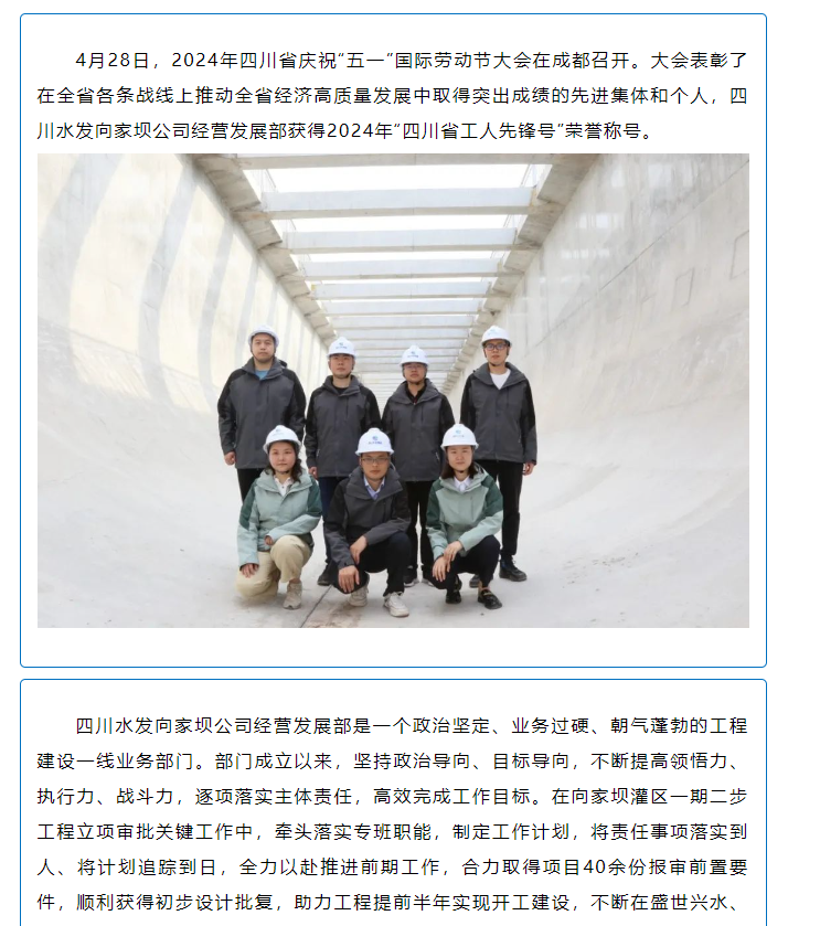 喜報!向家壩公司經(jīng)營發(fā)展部獲得2024年“四川省工人先鋒號”榮譽稱號