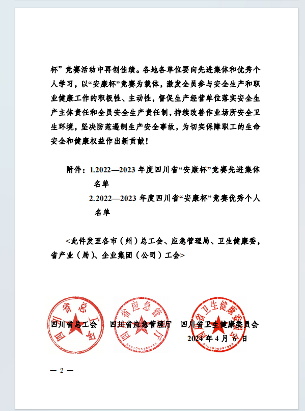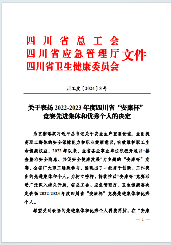 喜報!集團(tuán)榮獲2022-2023年度四川省“安康杯” 競賽先進(jìn)集體和優(yōu)秀個人