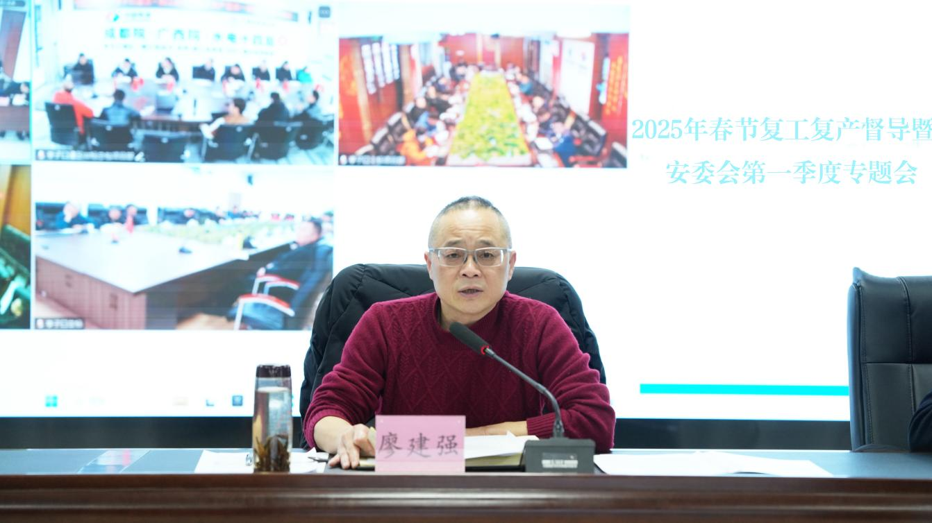 為進(jìn)一步貫徹落實(shí)集團(tuán)安委會(huì)2025年第一次全體成員會(huì)議精神及近期關(guān)于安全生產(chǎn)工作相關(guān)要求,全力做好亭子口灌區(qū)一期工程安全生產(chǎn)各項(xiàng)工作,有效防范化解各類(lèi)安全風(fēng)險(xiǎn),確保春節(jié)后復(fù)工復(fù)產(chǎn)安全和下一階段安全生產(chǎn)形勢(shì)持續(xù)穩(wěn)定向好,2月13日,亭子口公司組織召開(kāi)了2025年春節(jié)節(jié)后復(fù)工復(fù)產(chǎn)及第一季度安全生產(chǎn)會(huì)議。會(huì)議由黨委書(shū)記、董事長(zhǎng)、安委會(huì)主任廖建強(qiáng)主持。